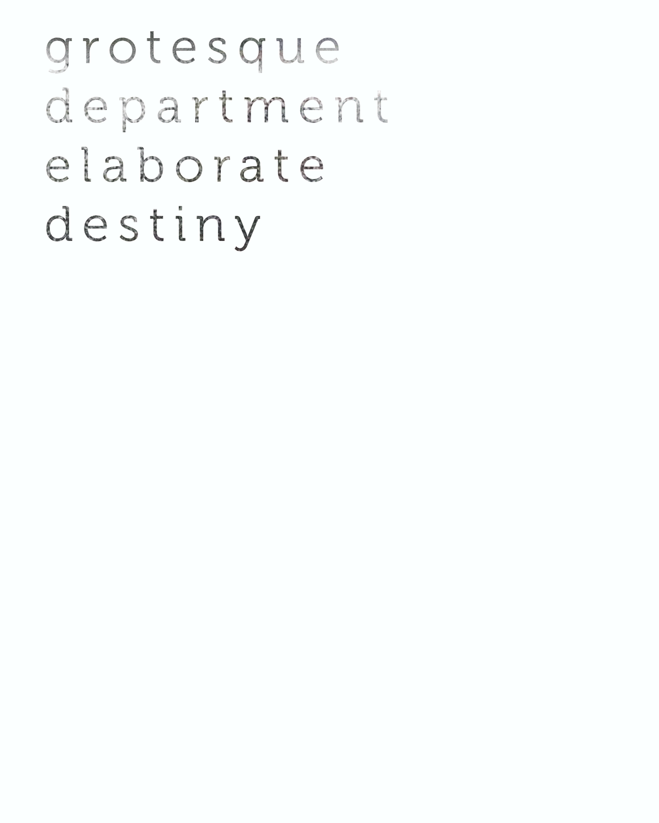 I set out to experiment with the boundaries of type, distortion, textures, envelopes distortions, and blending. I wanted to destroy typography, or shape it in unconventional ways to complicate what was already there. I would gather random words from a generator, and then blend/warp/distort/destroy these words in ways that would amplify their meaning or remove meaning altogether.